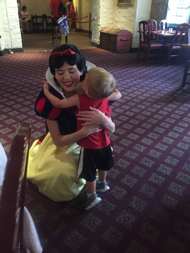 Akershus Royal Banquet in Epcot- This was another favorite character dining experiences. If you are like me and cry like a baby when you watch kids have fun, then grab the tissues. I chose this dinner specifically for the girls, but Tennison ended up having fun too. You need to get reservations for this because they do fill up fast. When they announce you to walk in (bringing their best Disney A game theatrics of course) you are escorted to meet the first princess of the evening. In our case, we met Belle (my favorite!!). After pictures and autograph signing you are escorted to your table and may begin getting salads from a salad bar. Wait staff will come around and get your order for dinner. Meanwhile the Princesses will come out and start walking around to each table. At one point they did a grande march around the restaurant and the little princesses were able to join in. (Tears were flowing while I watched my daughter’s lead in front with Ariel around the room..😍 I instantly became “that mom” yikes 😳) the girls were treated like royalty while my son ended up hugging all the princesses… typical boy. It was an A+ experience. The best part was we met 5 princesses that night in one stop. Ariel, Aurora, Belle, Cinderella and Snow White were all there.