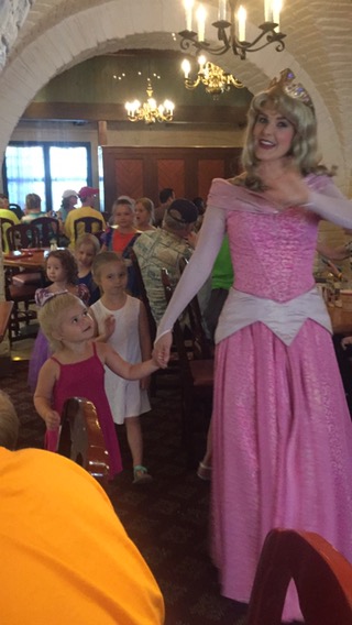Akershus Royal Banquet in Epcot- This was another favorite character dining experiences. If you are like me and cry like a baby when you watch kids have fun, then grab the tissues. I chose this dinner specifically for the girls, but Tennison ended up having fun too. You need to get reservations for this because they do fill up fast. When they announce you to walk in (bringing their best Disney A game theatrics of course) you are escorted to meet the first princess of the evening. In our case, we met Belle (my favorite!!). After pictures and autograph signing you are escorted to your table and may begin getting salads from a salad bar. Wait staff will come around and get your order for dinner. Meanwhile the Princesses will come out and start walking around to each table. At one point they did a grande march around the restaurant and the little princesses were able to join in. (Tears were flowing while I watched my daughter’s lead in front with Ariel around the room..😍 I instantly became “that mom” yikes 😳) the girls were treated like royalty while my son ended up hugging all the princesses… typical boy. It was an A+ experience. The best part was we met 5 princesses that night in one stop. Ariel, Aurora, Belle, Cinderella and Snow White were all there.