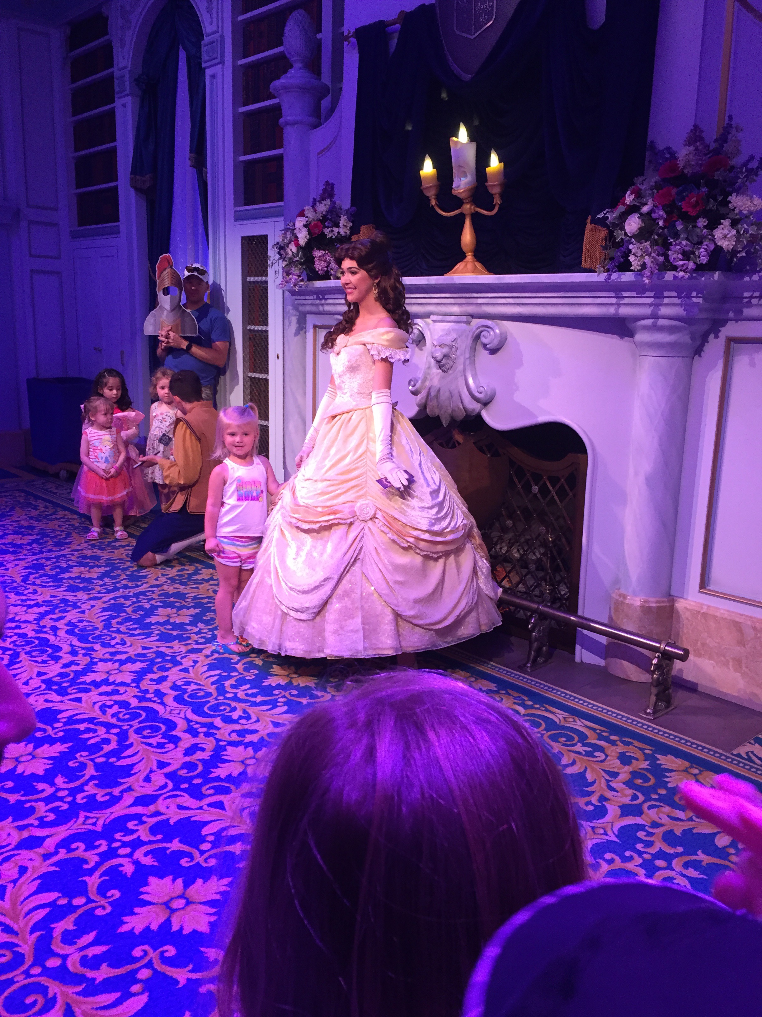 Kilimanjaro Safari in Animal Kingdom- This is one of my personal favorites as an adult as well as it was one of our children’s favorites. You get in a jeep and your guide takes you on a tour through the “African Savannah”. I read once that the animals come out more often early in the morning, so every time we have gone we do this first thing when we get there. I have always seen lots of animals at this time, but have no other time to compare it to because we always do it first! You see so many animals including giraffes, lions, elephants, hippos, crocodiles and so many more. It is a favorite in our book and it definitely makes the top 10 list for us. - Enchanted Tales with Belle- This year was the first time we had been able to do this, it’s fairly new to the park. However, it is one of my new favorite things! Talk about interactive, this experience includes all the kids and some adults right in to the storyline! You meet Belle and with the help of Lumiere you help tell the story of Beauty and the Beast. The kids hold character signs and act out the story. It was amazing.