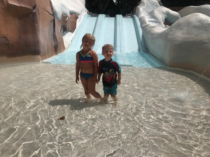 I will say that the lines for the water slides here do fill up very fast and there are no fast passes for the water parks. So get there right when it opens and do the slides first, then introduce your kids to the pool and the kiddie areas. You’ll be able to do more that way.