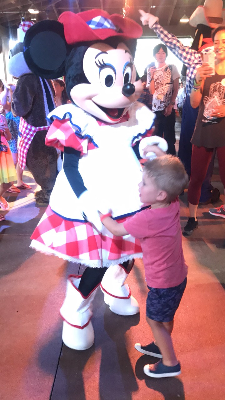 - Character Meet and Greet- This is an epic place to meet Mickey, Minnie, Goofy, Chip and Dale. For one thing, they don’t JUST sign autographs. They get out on the dance floor and dance with your kids! It is so adorable. They also have designated times where you can get pictures and autographs as well.