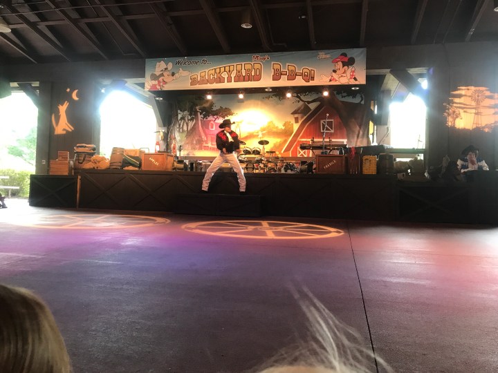 - Trick Roper- One of the highlights, in our opinion, is the Trick Roping Cowboy! In true Disney fashion, he has proven himself as a professional and has won national titles in trick roping (I didn’t even know this was a thing… but it is… and it’s awesome). All the children sit around the dance floor while he performs different tricks. Just spinning the rope is impressive to me, but this guy can do multiple ropes at a time, jump through them and many other tricks! You will be amazed lol. My daughter left the barbecue begging for trick roping lessons.