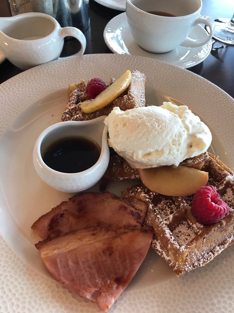 I ended up ordering the Sour Cream Waffle and it was more delicious than I ever expected. I will say that it is very sweet. If I were going to do it again I might order another menu item only because I did not shy away from those prebreakfast croissants! 😂 So if you are thinking waffle, maybe only one croissant. The food portion was large and I did not finish it all to say the least.